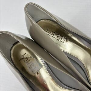 Lauren Ralph Lauren Pump Heels Size 9.5 Shiny Taupe Patent Leather FLAW