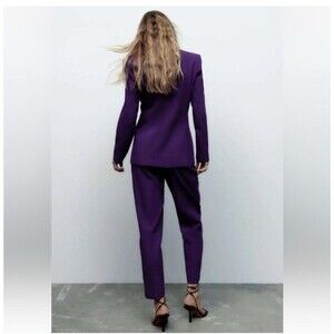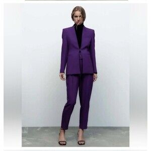 The Zara Lapelless Fitted Blazer in Dark Purple, size S, is a stylish and versatile career wear piece. Made of polyester, this blazer features a basic jacket style and is designed for women. The lapelless design adds a modern touch to the classic blazer silhouette, making it suitable for office wear or dressier occasions. The dark purple color adds a pop of color to any outfit, making it a great addition to any woman's wardrobe.
