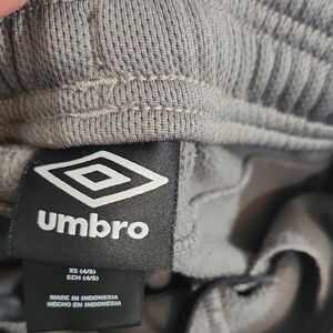 Comfortable gray joggers with elastic waistband. Features Umbro logo. Perfect for active wear. Has pockets and the fabric is thick. Perfect for a cool day!