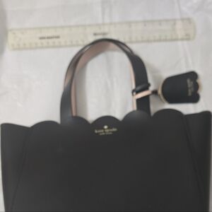 Chic Kate Spade tote in black with cream straps. Scalloped edge design. Ideal for everyday use. in Excellent condition!!👌