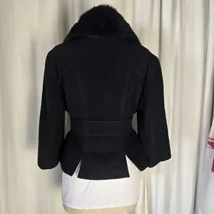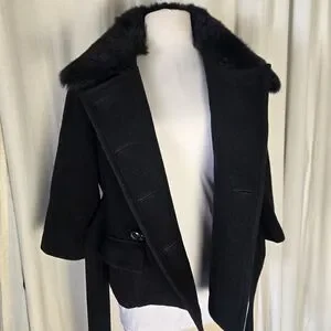 Bebe Wool With Fur Trim Crop 3/4 Length Sleeve Jacket Large