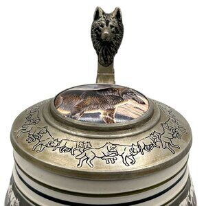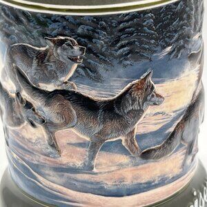 wolf stein wolf pack series Al Agnew design pewter handle limited edition Anheuser Busch beer stein wolf art collectible mug ceramic stein handcrafted stein wolf run Budweiser collectible