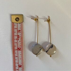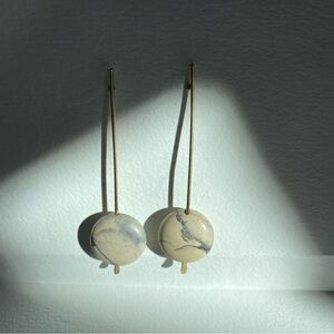 Baleen gold drop earrings with cream marble accents. 2.5” drop, post back.