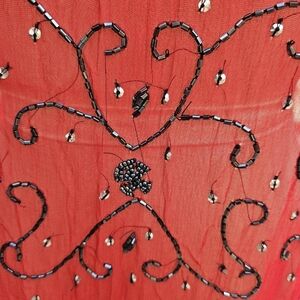 Red and Black Beaded Sheer Dress or Cover-up SZ M/L Women's
