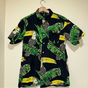Men’s Hurley Brand Bird Toucan Hawaiian Summer Vacay Button Down Shirt Size: M