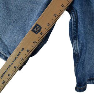 These Signature by Levi Strauss shorts combine rugged ease with classic denim styling. Designed in a medium blue wash with a relaxed fit and straight leg, they feature 5-pocket construction, belt loops, and a raw hem look. Tag size W38.