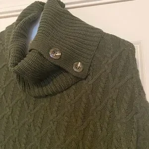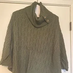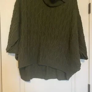 Design History Green Cable Knit Poncho Sweater with Turtleneck
