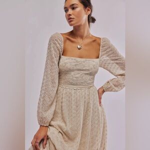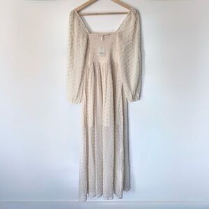 Free People Malina Maxi Dress Cream Lace Boho Babydoll NWT Size Small