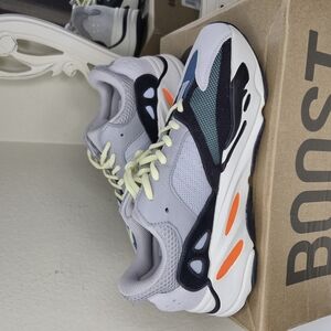 These Yeezy sneakers feature a striking chunky design with a layered upper in gray and black. Constructed from a blend of suede, mesh, and synthetic materials, they offer both style and durability. Perfect for those who appreciate the modern sneaker aesthetic.