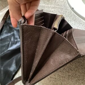 Louis Vuitton Ebene wallet on an unbranded strap that looks amazing with this.In beautiful condition.Big enough to carry your phone and all your essentials.Hardware is still very shiny and clean.will come with dust bag and unbranded bag charm that matches perfectly.
