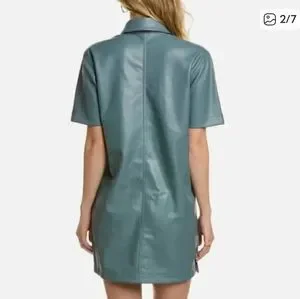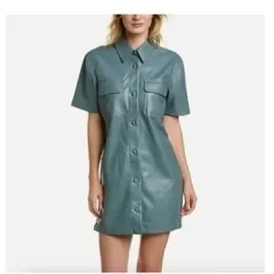 7 For All Mankind Faux Leather Shirt Dress Button Down Teal Size S