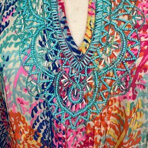Lilly Pulitzer Sarasota Beaded Tunic Top Electric Feel Cameo Sz S