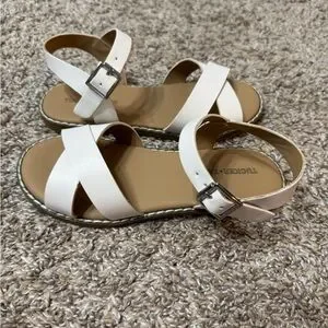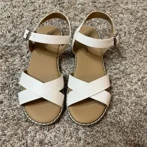Stylish white strappy sandals with a buckle closure. Perfect for casual outings. In very good used condition.