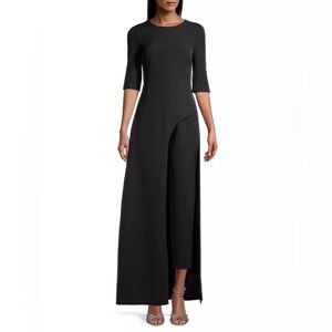 A stunning Kay Unger Davina walk-thru jumpsuit in black stretch crepe, brand new with tags.