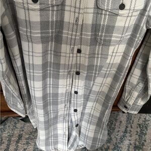 Nwot Outerknown Gray and white Plaid blanket Shirt dress size xs