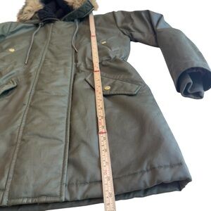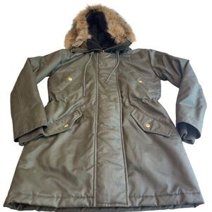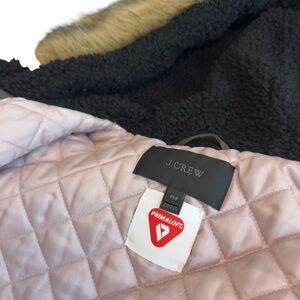 J.Crew Olive Green Utility Parka Petite XS Faux Fur Hood PrimaLoft Jacket EUC