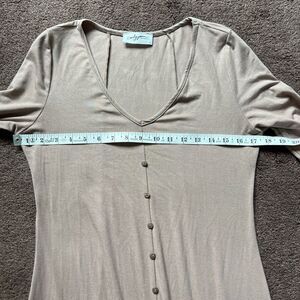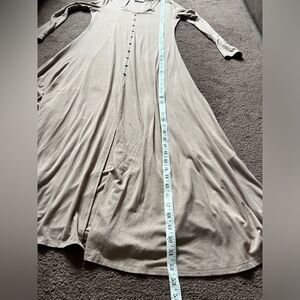 Super soft and comfy taupe maxi dress by Carly Jean Los Angeles! Size Medium. Button detail on the front. Long sleeves. V neck. Slit in the middle. In good used condition!