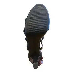 Stylish black gladiator heels with multiple straps. Perfect for a bold look.