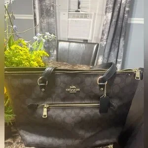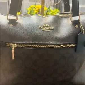 Authentic Coach Signature City Zip Tote (Style F79909) in brown/black with gold hardware. Perfect everyday shoulder bag — roomy, stylish & durable.