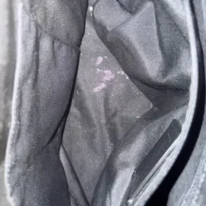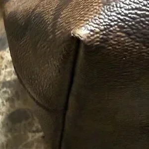 Good pre-owned condition. Light wear on bottom corners. Inside has small nail polish mark (see photo) — can be cleaned. Hardware & zipper work perfectly.