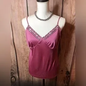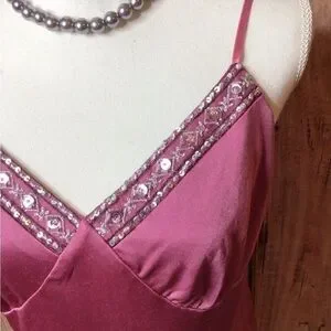 Large rose pink v shape camisole with sparkle bead work (0101)