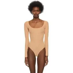 SKIMS TAN JELLY SHEER LONG SLEEVE BODYSUIT/ CLAY