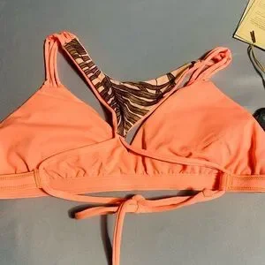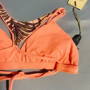 Maaji Pink and Purple Bikini Top with Tropical Print