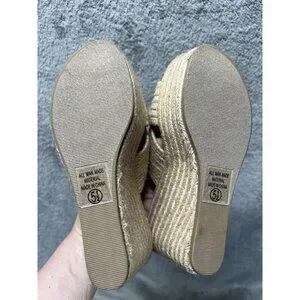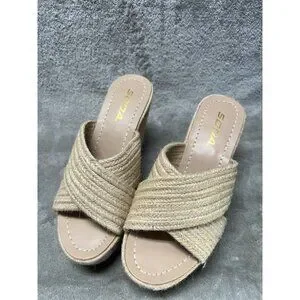 Vtg Soda 5.5 Natural Jute Raffia Open Toe Slide Sandal Platform Wedge Slip-On