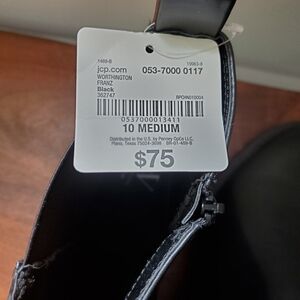 New, never worn Worthington Wor Franz women's black zip up boot. Size 10. Retails for $75. All man made materials. Nice thick sole. Side zip. Back handles to help with putting on. Super sleek. Smoke-free home. Ships today or next business day.