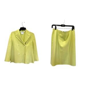 Celine Finition Main Citron Green Blazer Skirt Wool Blend Suit Set Sz 42 France