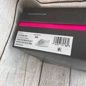 The product is a pair of Vince Camuto Bailah women's platform sandals in size 6M, featuring a slip-on closure and ultra-high wedge heel. The sandals are in a striking Tapue Red Moroccan color, made of leather with a leather lining, insole, and outsole. They are designed for casual or formal occasions, making them a versatile addition to any summer or spring wardrobe. The stylish slide design and unique color make these sandals a fashionable choice for women looking for both comfort and style.