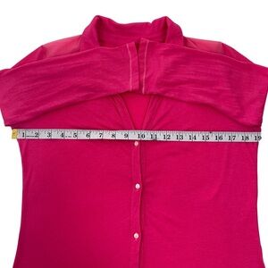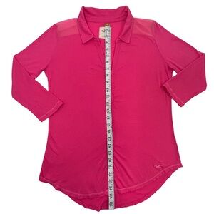 Hot pink medium button front v neck tee with mesh shoulders by Hollister
