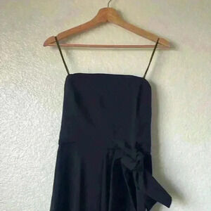 Sharply tailored, but with a dose of feminine charm, this Black Halo jumpsuit is ready to go toe-to-toe against your best cocktail dress. Pair it with minimalist pumps to really let the style stand out. Fabric: Mid-weight, stretch suiting Bow at side Tailored silhouette Strapless Ankle length Hidden zip at back Shell: 62% polyamide/32% viscose/6% elastane Partially lined.