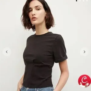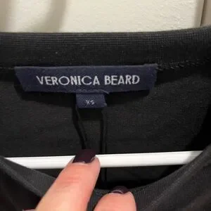 Veronica Beard Ankara Black Short Sleeve pleated waist Tee xs NWT