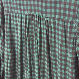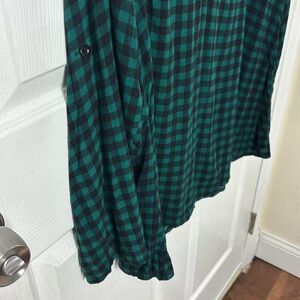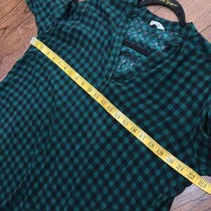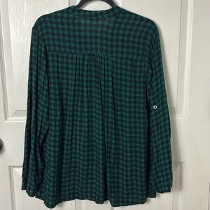 MEAKEOR lightweight flowy Green Checkered Womens vneck blouse sleeve tab size XL
