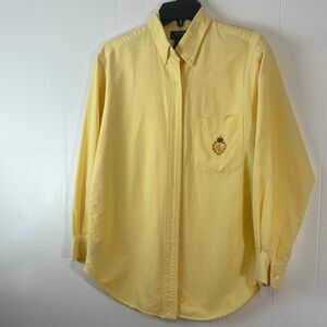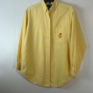 women’s Yellow Button-Up Shirt with Embroidered Crest Ralph Lauren Size 10