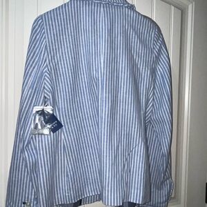 Crown & Ivy Blue and White Striped Blazer with Ruffles