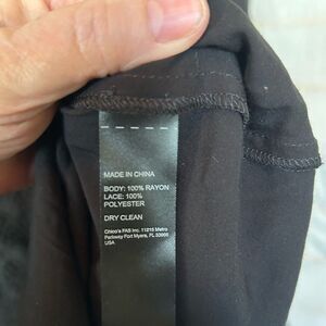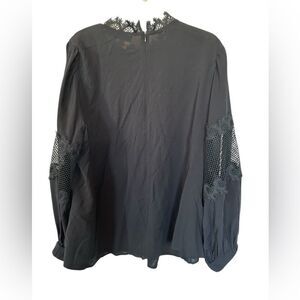 Black Label by Chico’s Black Lace Trim Cropped Blouse Long Cuffed Sleeve 16