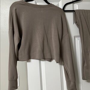 Cozy brown lounge set with a relaxed fit. Includes a long-sleeve top and matching pants (with pockets!). Size small and in great condition!