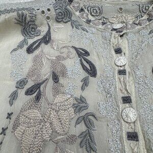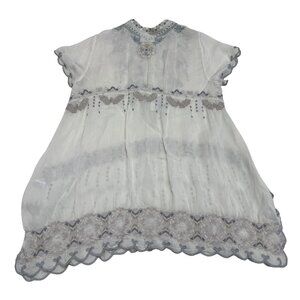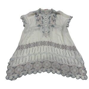 Johnny Was Women's Boho Floral Embroidered SS Tunic Blouse Top, Size M