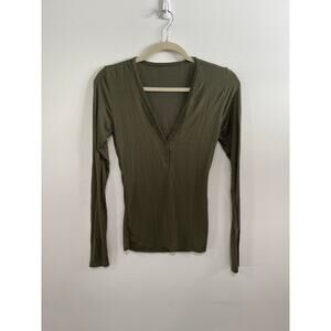 Fitted and buttery soft with a sexier deep v-neck. We took a classic henley silhouette and updated it in our dreamy Whipped modal. Size M