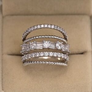MULTI Band Diamond CZ Stone Ring Stacked Statement Wide Silver Multilayered