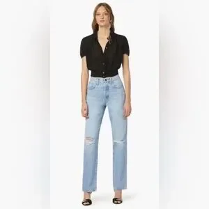 Stylish and comfortable, these light blue distressed jeans are perfect for a casual day out. The ripped design adds a trendy touch to your outfit.