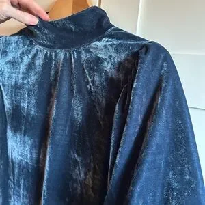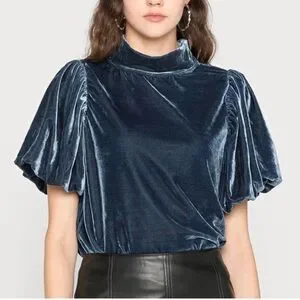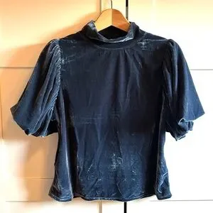 Gorgeous boho-glam top with mock neck, slight padded shoulders, puff sleeves, buttery velvet body. Excellent like-new Condition