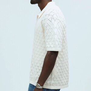 Madewell Mens Johnny Collar Sweater Polo Shirt in Diamond Stitch Size Small