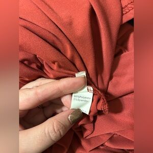 Spaghetti strap Summer Maxi Dress. Women’s size Large. Rustic Salmon. Adjustable shoulder straps and across the back tie. Scoop hem. Like New Great Condition. Open to offers.
