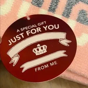 Chic Juicy Couture socks. Soft pink and gray knit. Insulated for warmth, one size stretch.