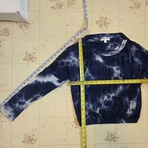 Elevate your casual wardrobe with this navy tie-dye crew neck sweater. Perfect for a relaxed yet stylish look.
