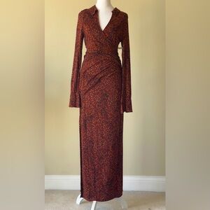 Free People Shayla Wrap Midi dress plunging neckline rendered on a ruched style.