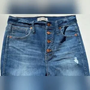 Trendy 10" high-rise skinny jeans with a distressed look. Perfect for casual wear. Made by Madewell.